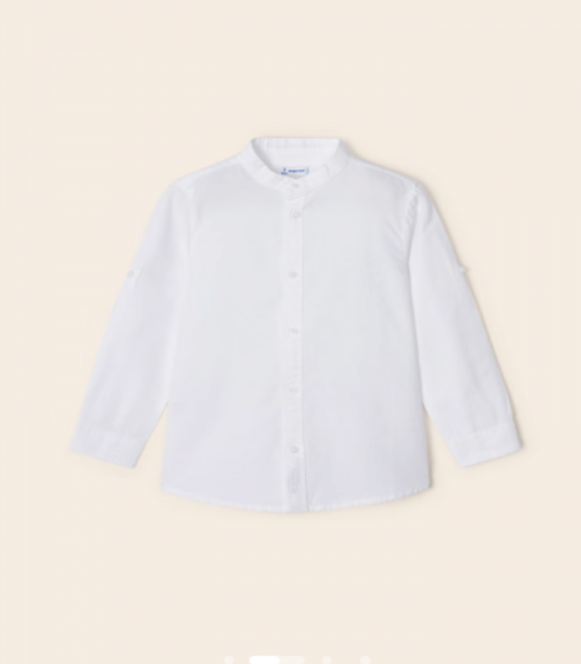 Camisa de manga larga con cuello mao en lino para niño 3167 Blanco