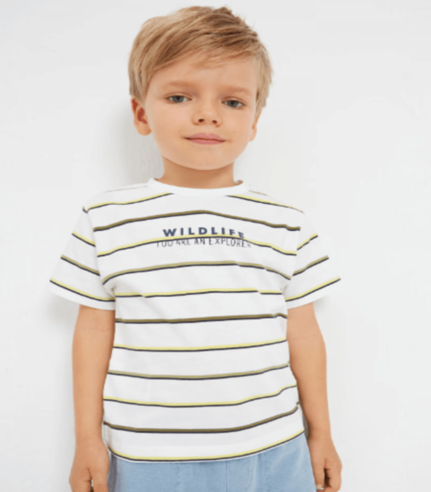 Prenda ECOFRIEND 100% algodón sostenible. Camiseta de manga corta para niño. Cuello redondo. Diseño estampado.