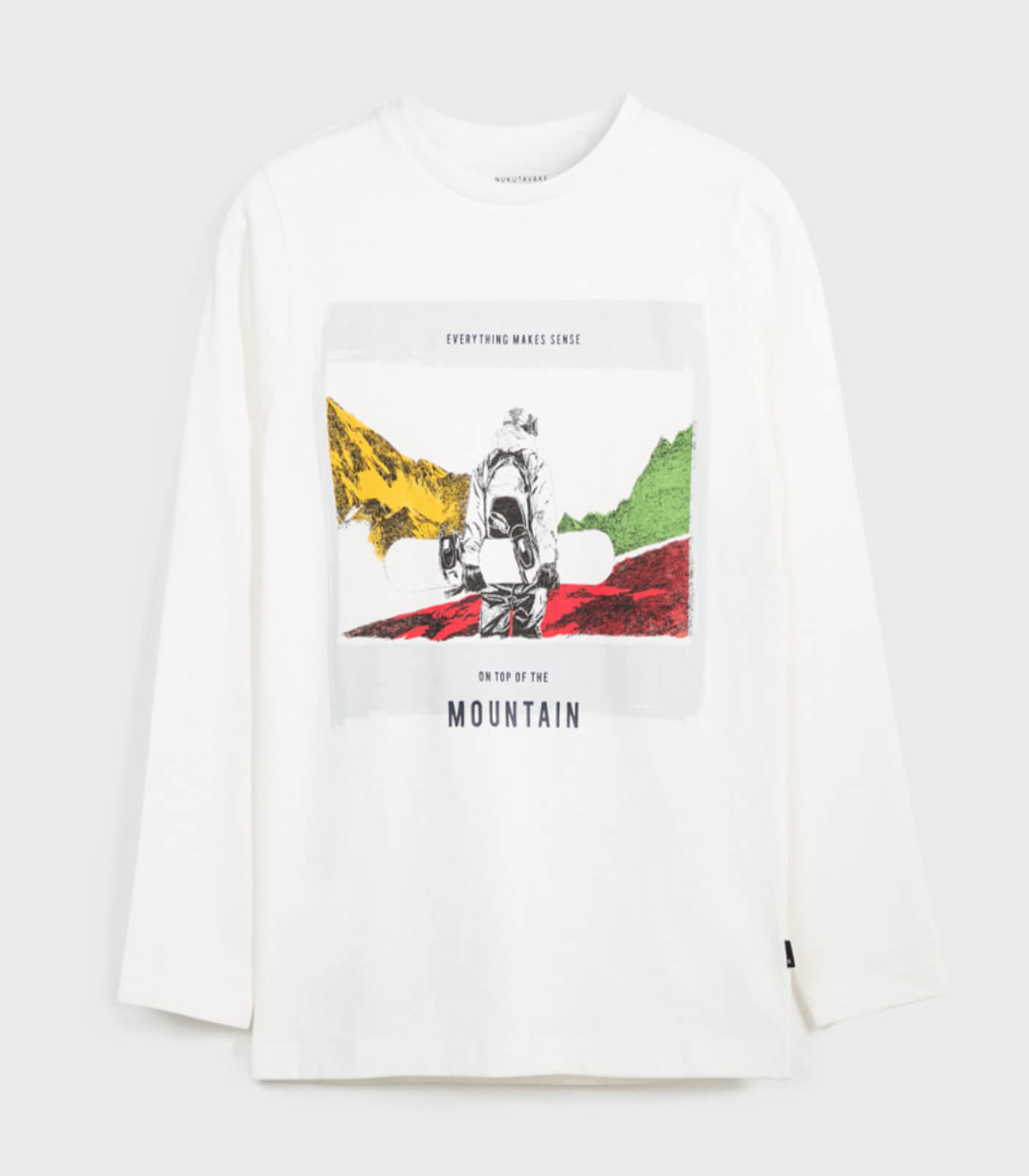 Camiseta de manga larga para chico de 8 a 16 años confeccionada con algodón orgánico. Cuello redondo. Tejido 100% algodón.
