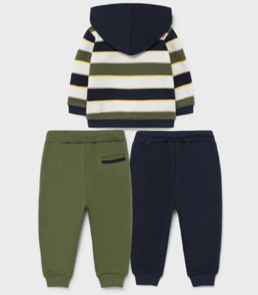Chándal de tres piezas para bebé niño 12 a 36 Meses compuesto por una sudadera y dos pantalones largos deportivos.