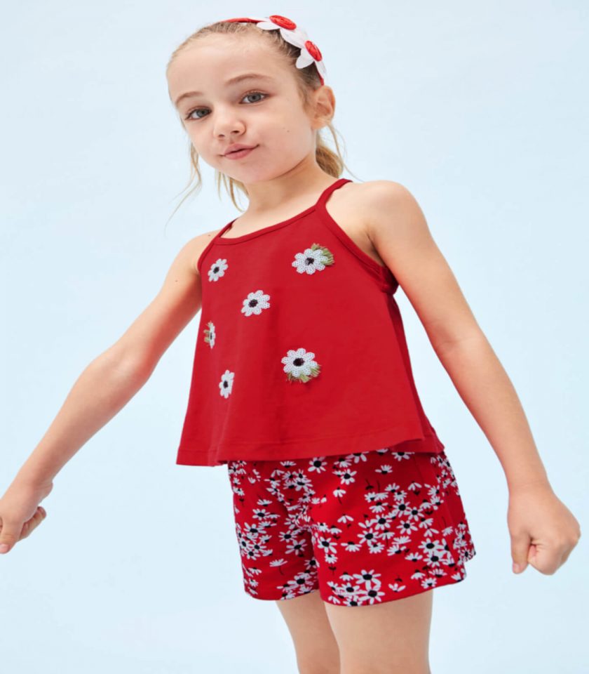 Top de tirantes para niña. Tejido 100% algodón. Estampado con decoración floral.