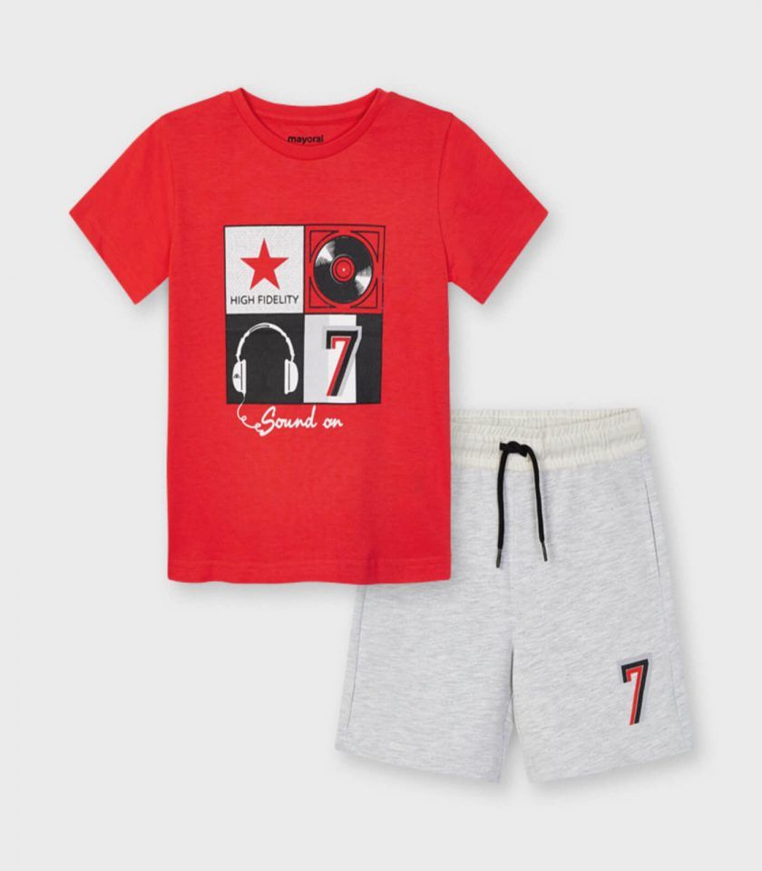 Conjunto de camiseta y bermuda combinadas para niño de 2 a 9 años.