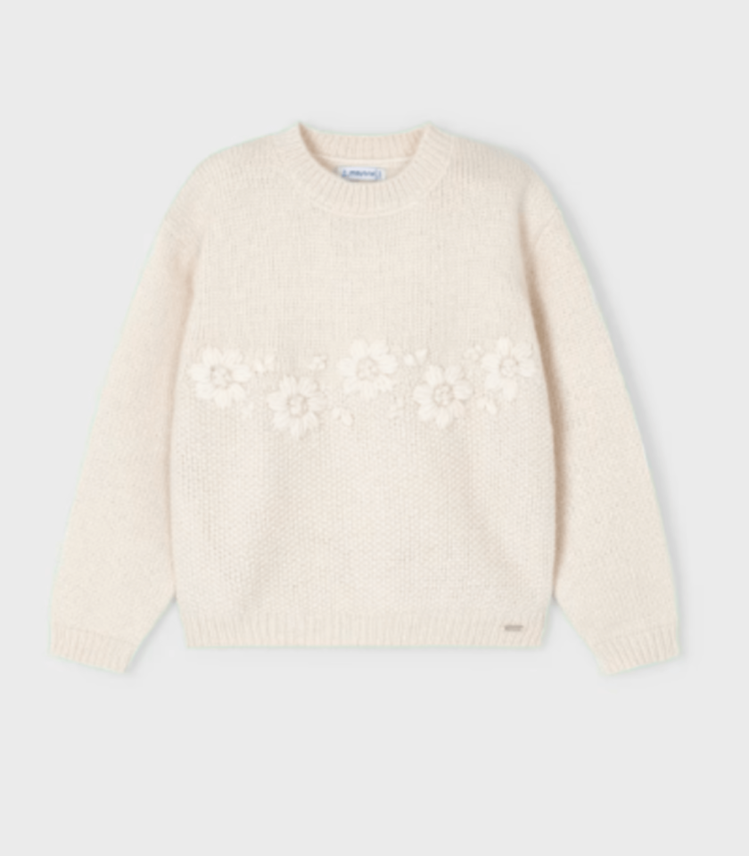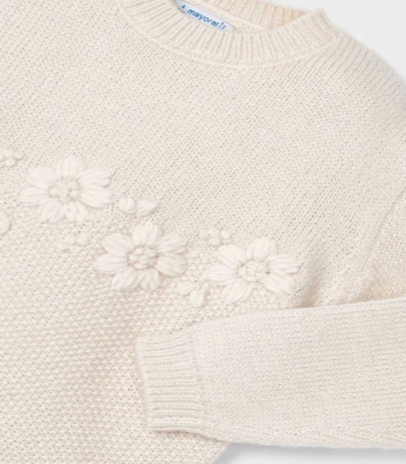 Prenda ECOFRIENDS contiene poliester reciclado. Jersey de manga larga para niña. Tejido con hilos metalizados de acabado original y brillante. Elementos de adorno: bordados.