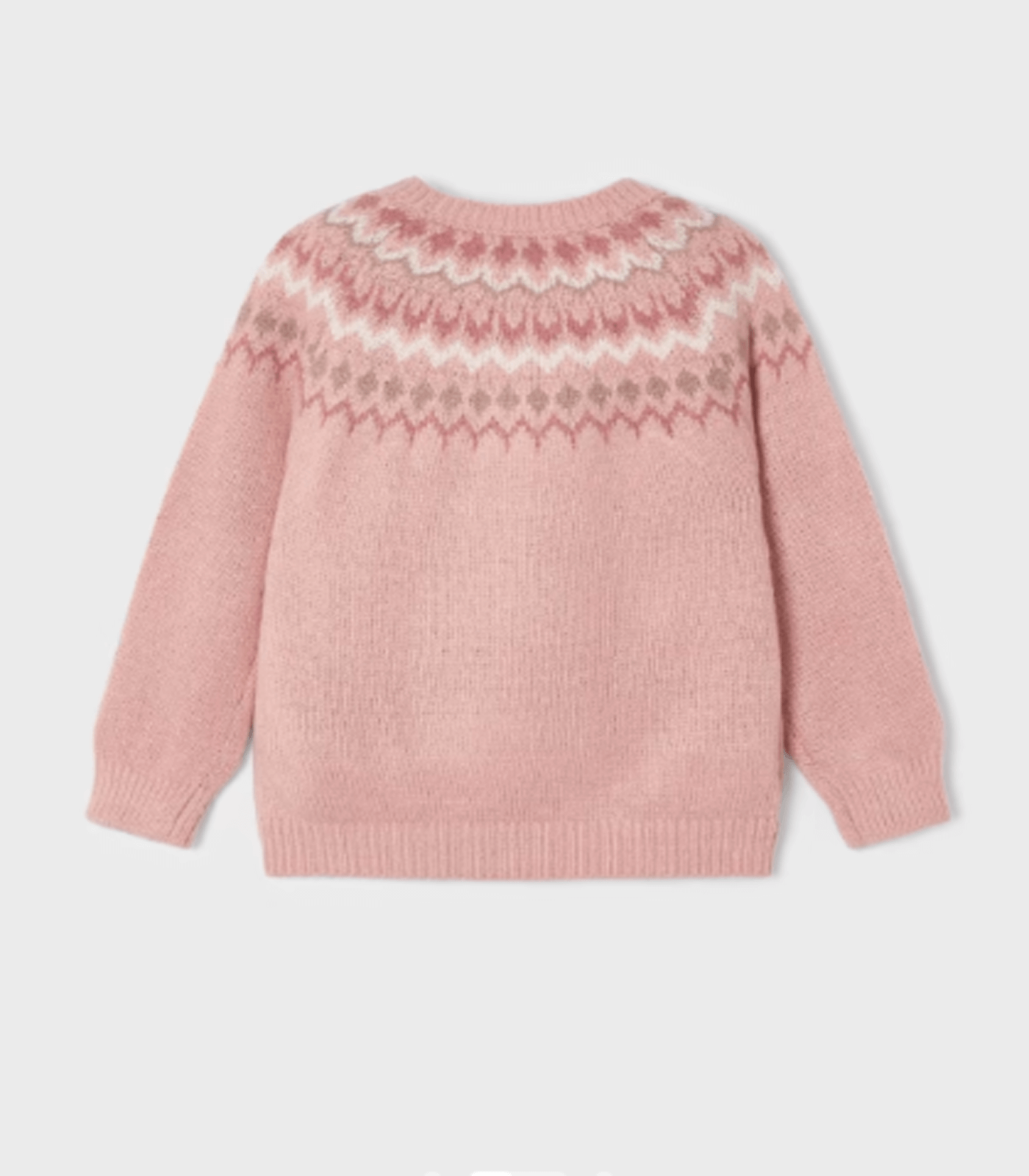 Jersey para niña con mangas abullonadas. Cuello redondo. Cálido tejido elegante y sofisticado para las ocasiones más especiales. Elementos de adorno: pompones.