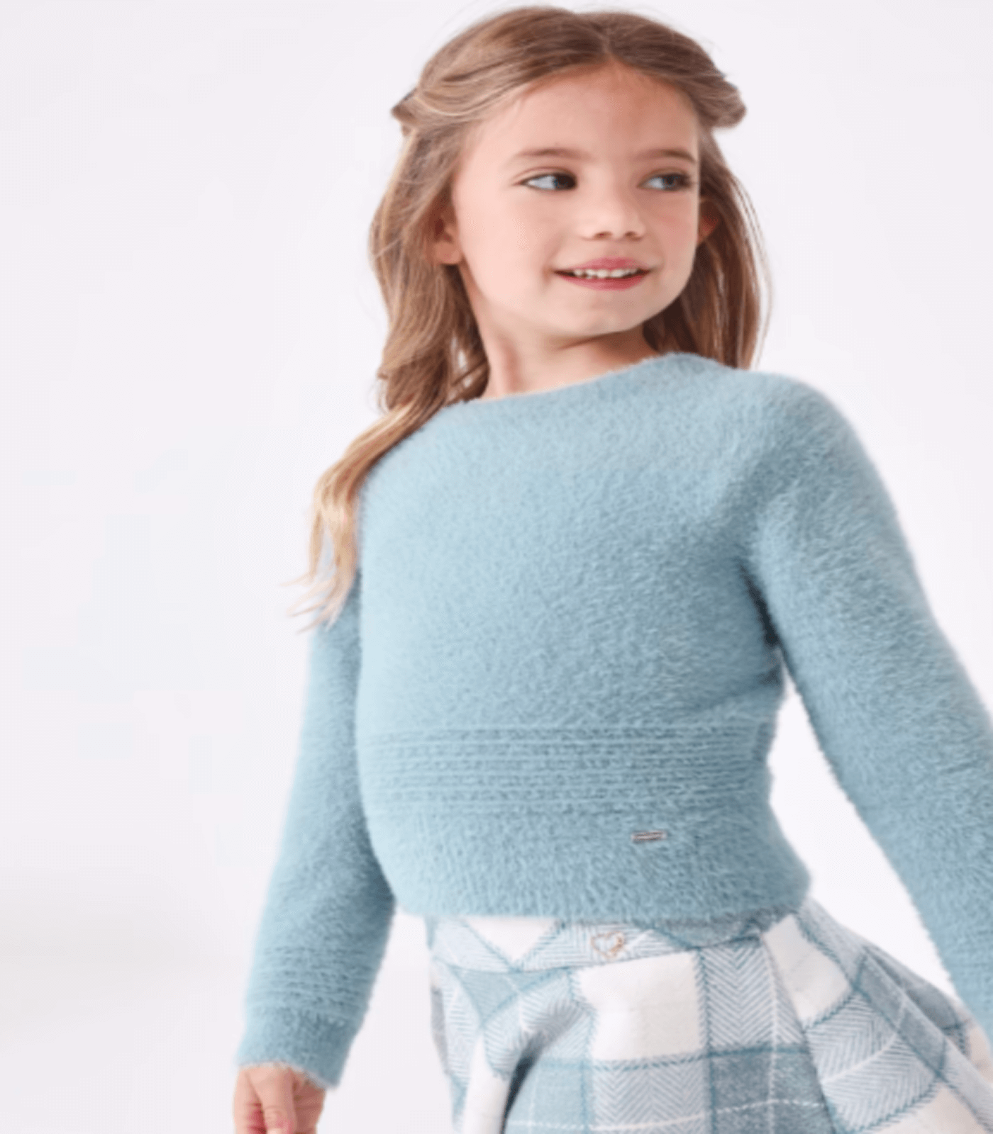 Jersey de manga larga para niña. Cuello redondo. Suave y gustoso tejido exterior de pelo.