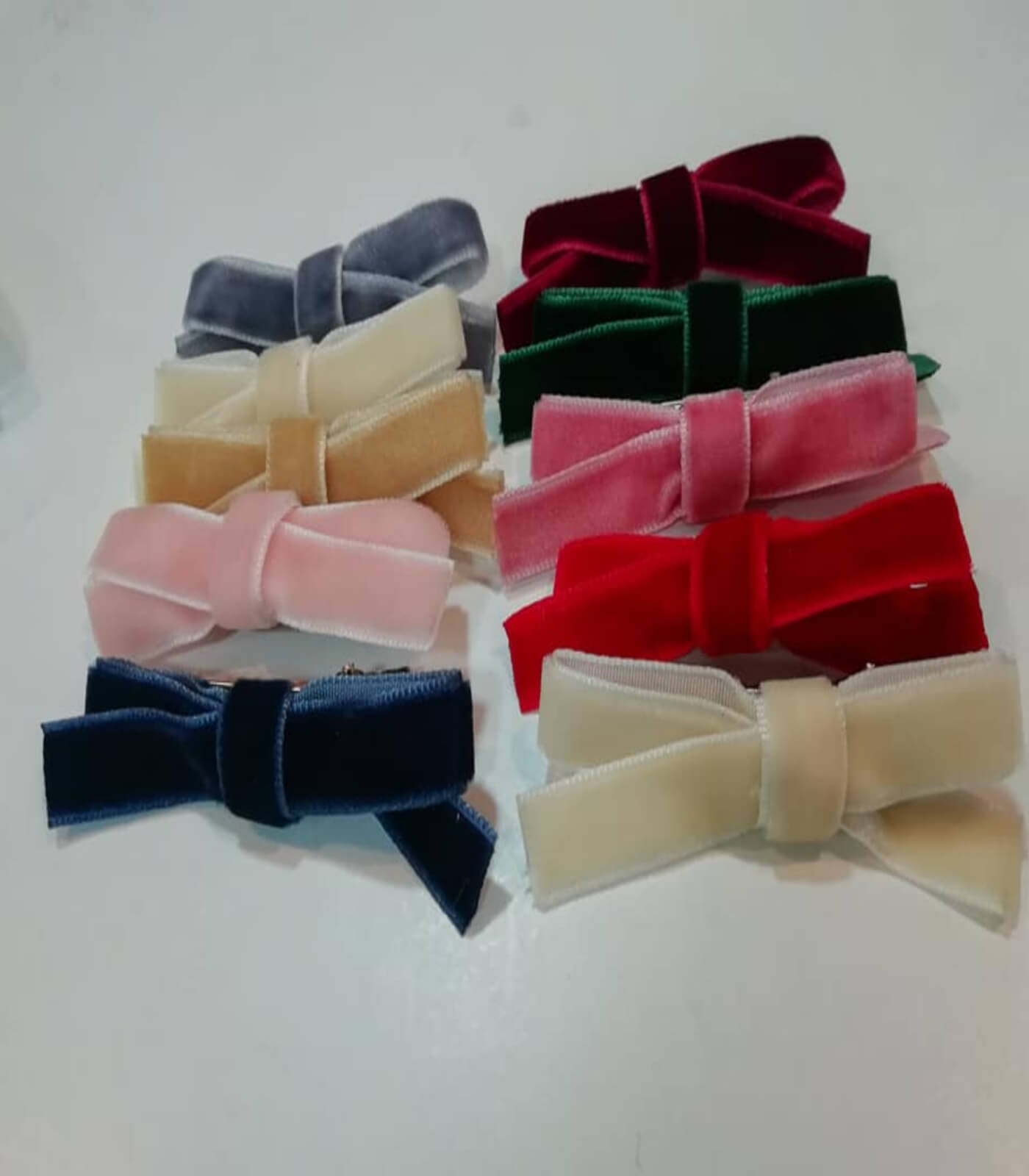 Lazo de terciopelo finito, con pinza pato para mayor sujección.