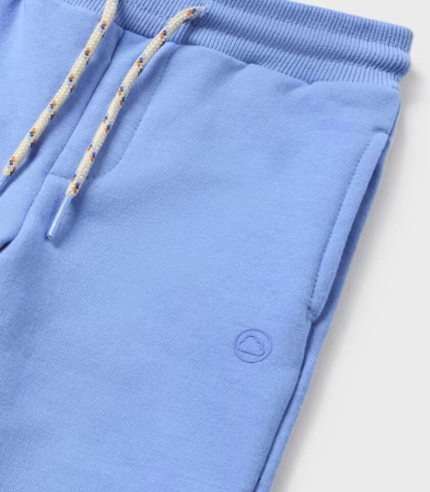 Pantalón deportivo de tipo jogger para bebé, holgado en la parte superior y más estrecho a medida que baja hacia el tobillo. Cintura elástica con cordón ajustable. Rodilleras reforzadas en el interior para evitar el desgaste en la zona y ofrecer mayor resistencia y durabilidad. Diseño liso.