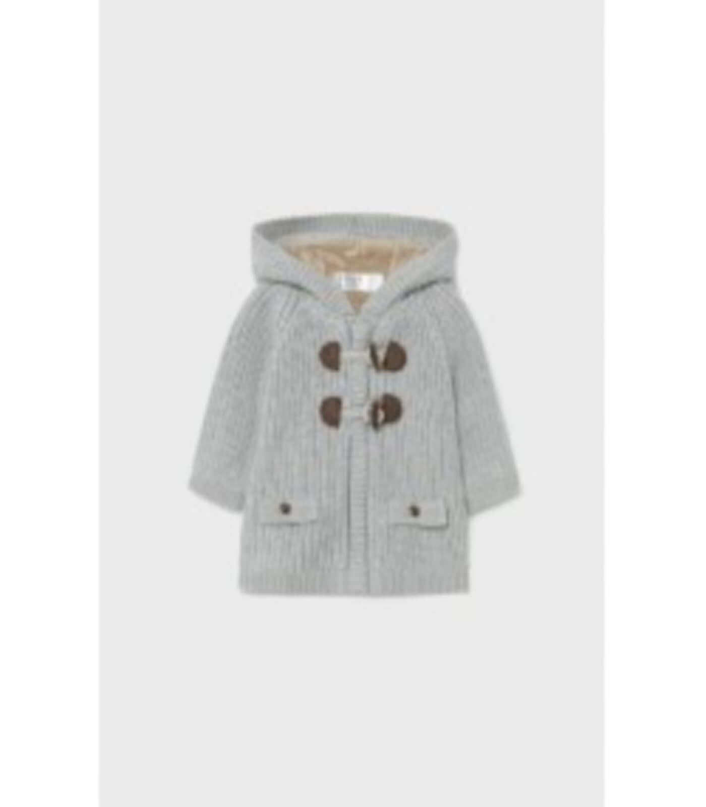 Rebecon bebe niño en color gris vig, diseño de punto con adornos estilo trenca, forrado de pelito por dentro, adorno bolsillos.