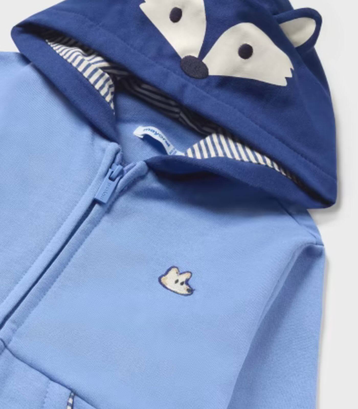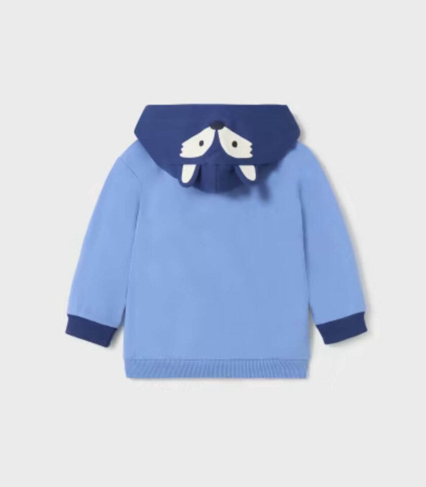 Sudadera de manga larga para bebé. Modelo con capucha. Cierre central delantero con cremallera. Elementos de adorno: aplique de orejitas.