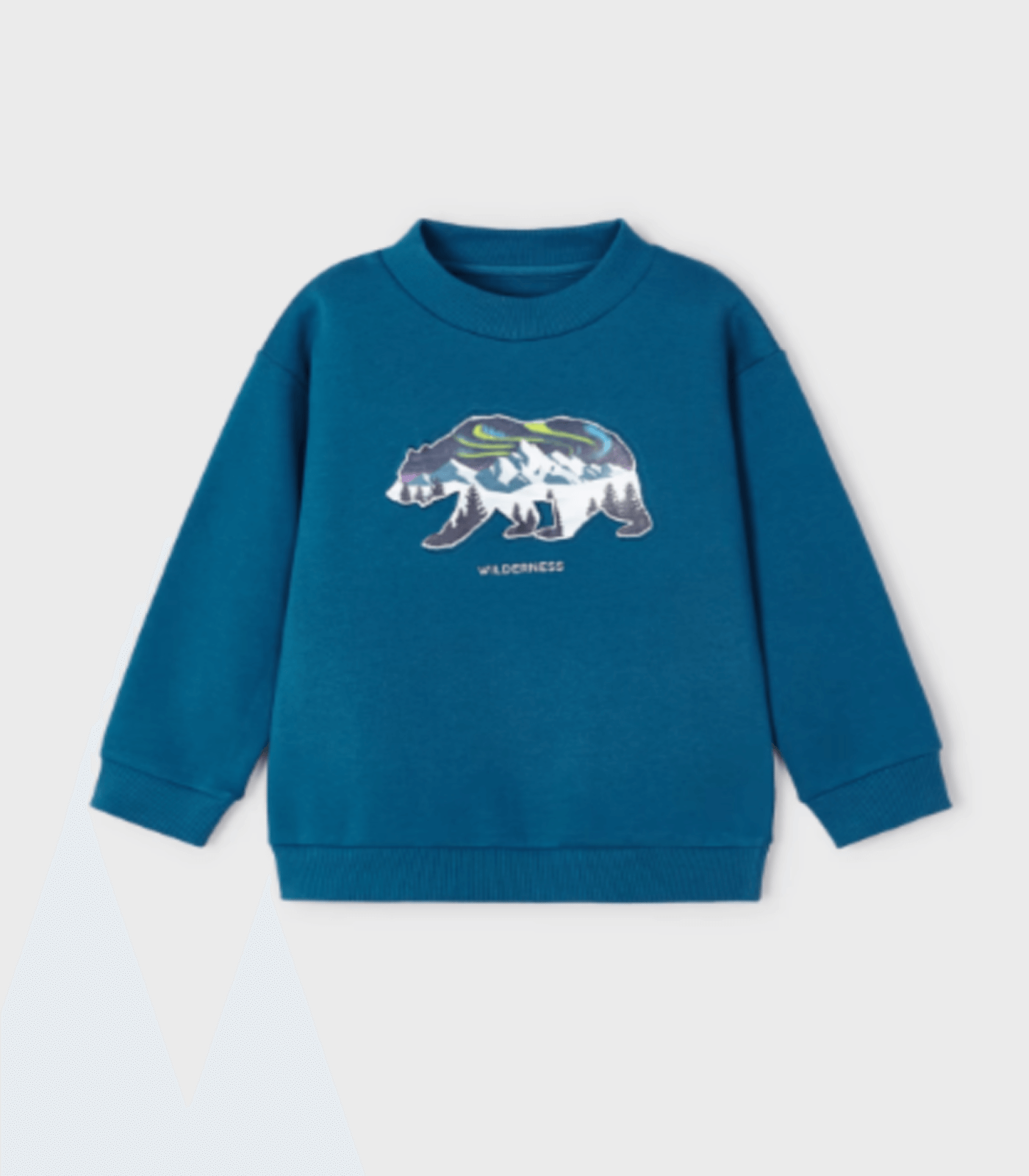 Sudadera de manga larga para niño con puños elásticos. Silueta de líneas relajadas con hombros caídos. Elementos de adorno: dibujo en la parte delantera, detalle en relieve (embossed).