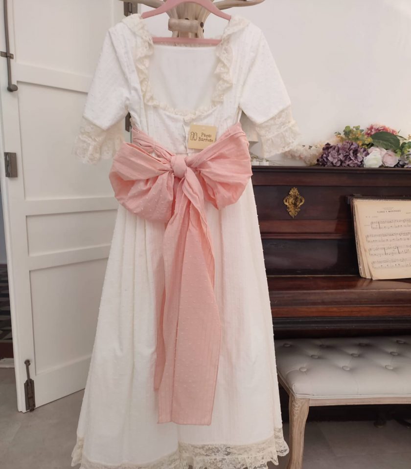 en la parte delantera y encajes de la colección 2023 de la diseñadora Paqui Barroso.