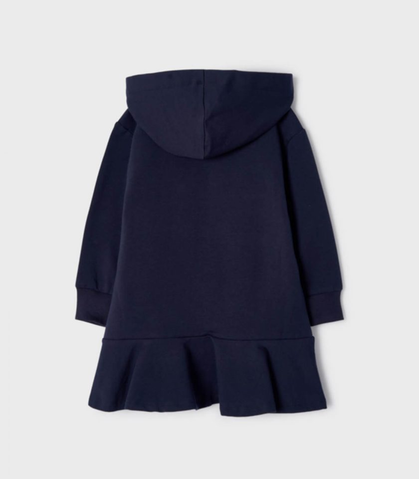 Prenda ECOFRIENDS, contiene algodón sostenible. Vestido de manga larga para niña. Modelo con capucha.