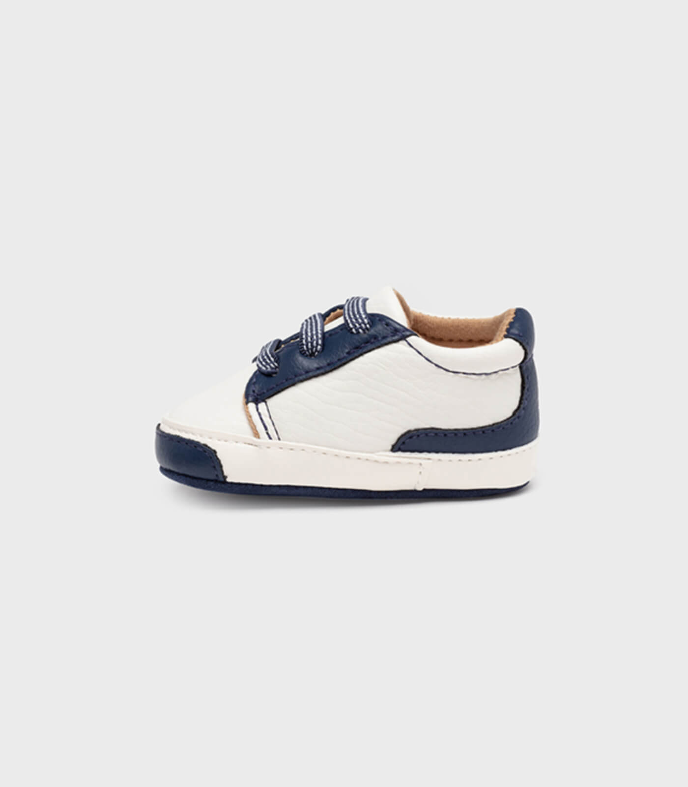 Zapatillas deportivas para recién nacido niño 0 a 18 Meses, de gran versatilidad para sus aventuras diarias. Calzado con forro interior y plantilla de algodón transpirable. Revestimiento exterior de materiales combinados. Cierre con cordones elásticos que permiten un mejor ajuste y facilitan el calce. Este artículo se presenta en una caja de la línea Newborn ideal para regalar en ocasiones especiales.